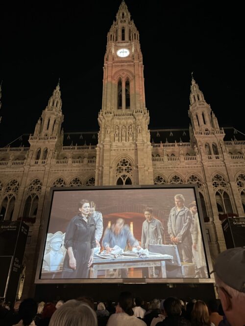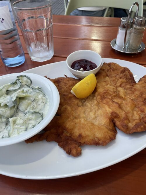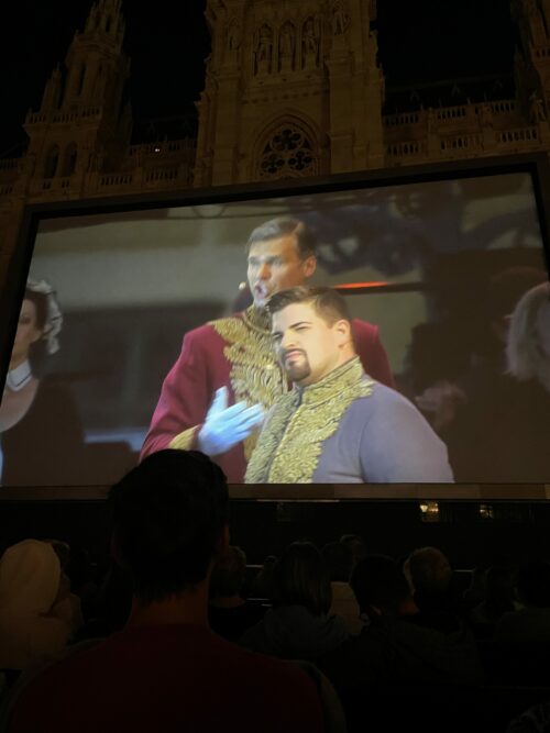 Le soir, je m’offre un dîner en terrasse au Schnitzel One pour déguster une spécialité locale, le Schnitzel de Vienne (= une escalope de veau panée). Cela fait du bien de s’imprégner de l’ambiance de la ville en terrasse. Plus tard, je retrouve Marika, une fille de l’auberge, pour une projection d’opéra à l’Open Air Festival, cette fois sur la vie de Sissi. C’était en allemand, mais heureusement, elle m’a traduit quelques passages.