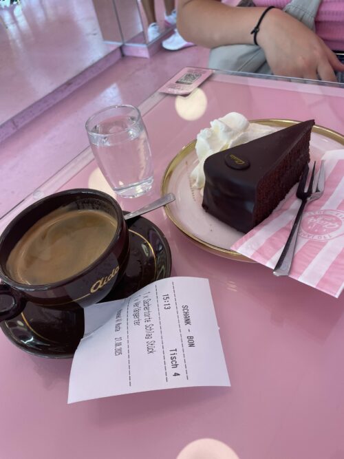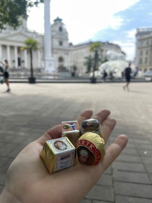 Dernier jour à Vienne, et on attaque la journée avec énergie ! Avec Marika, on commence par un petit déjeuner chez Kaffein Home base : un bon matcha latte et un cinnamon roll. Ensuite, direction le musée de Vienne, avec une halte gourmande au Manner Shop Wien pour acheter des Mozartkugeln, des bonbons au chocolat, pistache, pâte d’amande et praliné. Mon nouveau péché mignon.