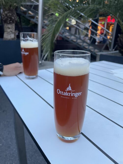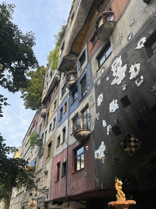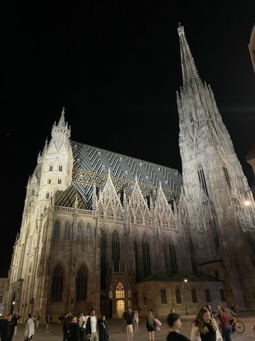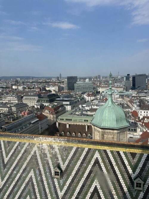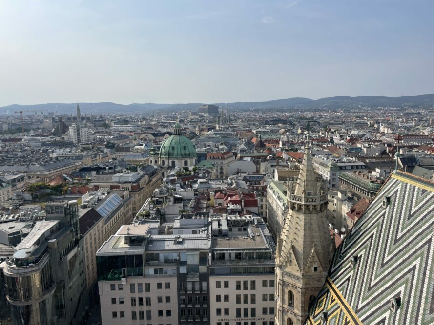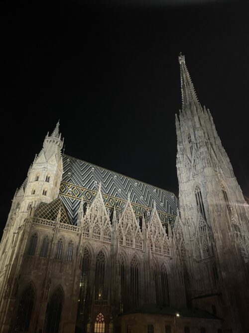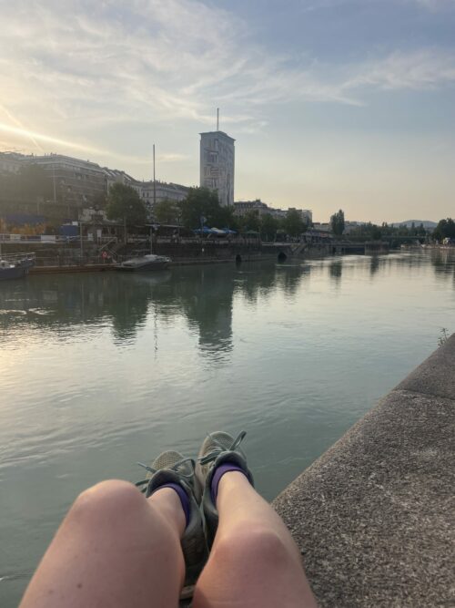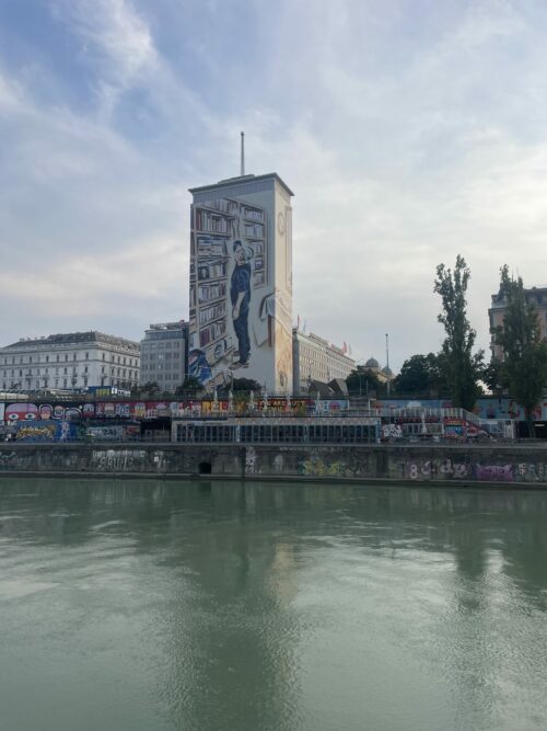 L’après-midi, je poursuis seule : montée en haut de la cathédrale Saint-Étienne pour admirer la vue, puis balade dans le quartier coloré de Weissgerberviertel avant de longer les quais du canal du Danube. La golden hour y est splendide : les Viennois prennent un verre, lisent, font du vélo, peignent, écoutent de la musique… l’ambiance est douce et inspirante.